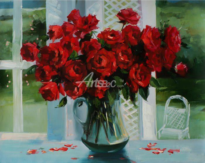 玫瑰花油画瓶花标记: 玫瑰花油画