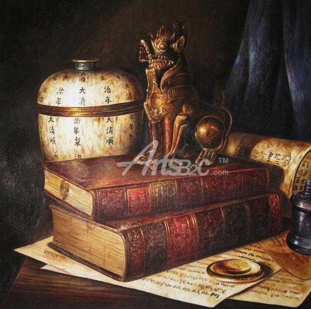 静物油画 中国风 书房装饰油画 OC3-9标记: 古典油画,书房油画