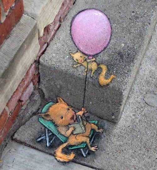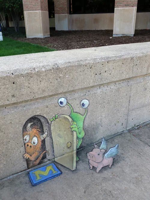 将彩绘画在公园的花圃墙上,增加亲切感。