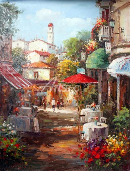 城市油画 巴萨罗那街边的商店 书房装饰画 OCE2-31标记: 城市油画,书房油画