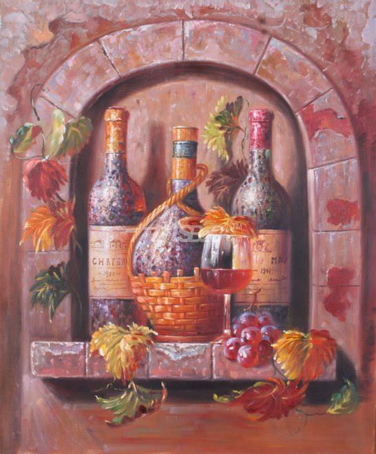 酒瓶静物油画 美式风格油画 OCM4-1标记: 酒瓶油画,餐厅油画