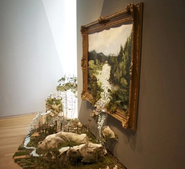 越来越多的艺术家对于艺术品材质的运用不再拘泥于用消耗性材质,还有一种新材质的探寻与废物利用的思想,将材质运用最大化。装饰画也不再仅仅是“画”,而是立体的雕塑与画相结合,最终产生微型景观效果。