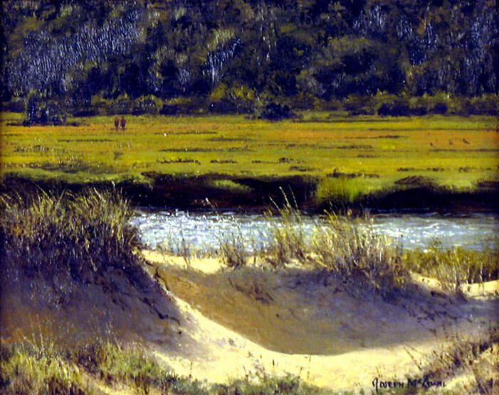 约瑟夫海瑟构(Joseph McGurl)1958年出生于美国麻省,父亲是个壁画家。毕业于Massachusetts College of Art麻省艺术学院。后从师于Robert Cormier,一个执着于法国学院技法的画家。Joseph和他的妻儿住在Cape Cod,以它的迤逦的礁石海滩,和童话般的海边村庄而著称。Cape Cod 又是一个艺术家聚集的地方。Joseph边航海,边写书,边作画。不象大部份画家,Joseph喜欢在野外完成他的大幅油画。这也许是他的风景画的光影明暗更为真确的原因。