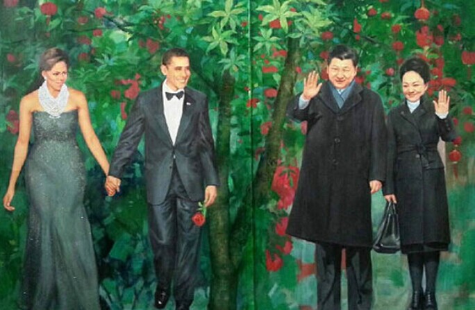 旅法女油画家王俊英2014年创作了情人节主题油画《中西合璧图》,在情人节前一天正式亮相。该画以红灯笼和树为背景,中国国家主席习近平和夫人彭丽媛及美国总统奥巴马和夫人米歇尔被作为东、西方情侣的典范入选画中。
