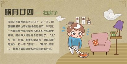 小年也意味着人们开始准备年货,准备干干净净过个好年,表示新年要有新气象,表达了汉族劳动人民一种辞旧迎新、迎祥纳福的美好愿望